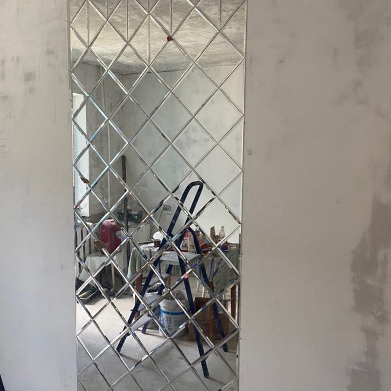 Использована зеркальная квадратная плитка с фацетом.